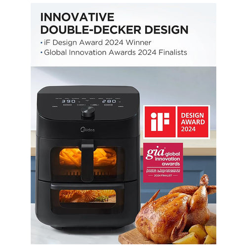 The air fryer is responsible for efficient cooking, the enamel pot is used for serving delicious food, and the storage box ensures the countertop remains always tidy.
